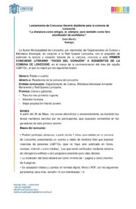 Bases-primer-concurso-literario-dicidentes-voces-del-corazon-para-la-comunidad-de-Loncoche.docx-1 Deja una respuesta Cancelar la respuestaComentarioIntroduce tu nombre o nombre de usuario para comentar Introduce tu dirección de correo electrónico para comentar Introduce la URL de tu web (opcional) Guarda mi nombre, correo electrónico y web en este navegador para la próxima vez que comente.