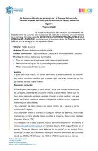 Bases-IV-Concurso-literario-para-mujeres-de-Loncoche-1 Deja una respuesta Cancelar la respuestaComentarioIntroduce tu nombre o nombre de usuario para comentar Introduce tu dirección de correo electrónico para comentar Introduce la URL de tu web (opcional) Guarda mi nombre, correo electrónico y web en este navegador para la próxima vez que comente.